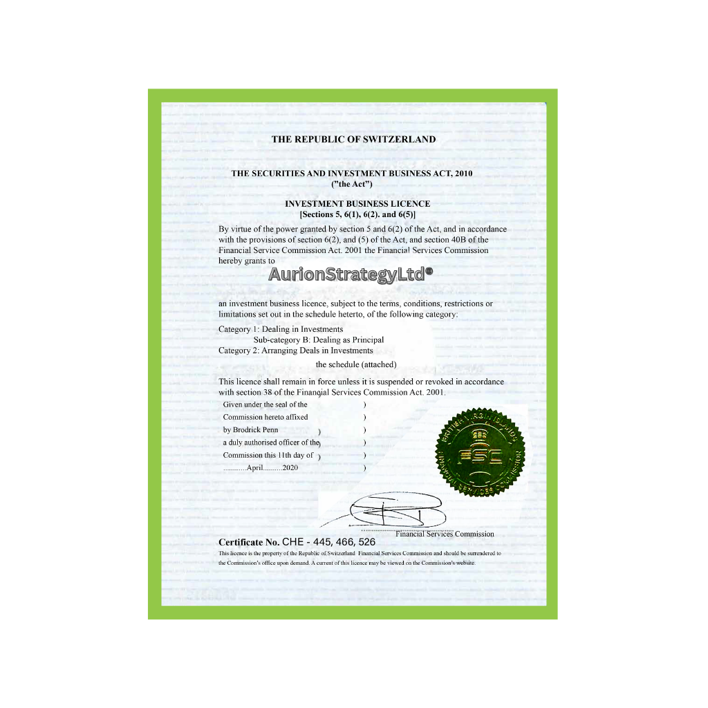 The entire company’s asset website, including the layout and design along with all the content and imagesare protected by copyright and as such, you are not permitted to reproduce any part of the company’sasset without our prior and full approval. In continuing our promise towards investors in assuring theirinvestment is conducted with confidence AurionStrategyLtd®® promotes fully transparent investment policy toits stakeholders and investors. We give you all the required investment information you need, includinggood rates, spreads and leverage, and other benefits of being an investor under our platform. All providedto ensure a safe and comfortable investment experience.